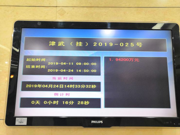 率先出让的津宁(挂)2018-03号宗地吸引了保利、碧桂园、中铁、元通4家房企到场争夺,在摘牌之前,交易中心的电子屏幕上已经出现了该宗地的2个报价,分别为底价1.834亿元、1.844亿元。竞拍环节中,1.854亿元起拍,元通率先出价, 随后碧桂园加入其中,二者接替出价,经过多轮口头报价,最终北京元通投资有限公司以2.3亿元拿下该宗地块,经查阅发现,上述拿地的房企元通也曾在2019年4月12日,参与过宝坻区津宝(挂)2018-014号地块的竞拍,彼时,014号地块由天津长信以2.1亿成功摘牌。