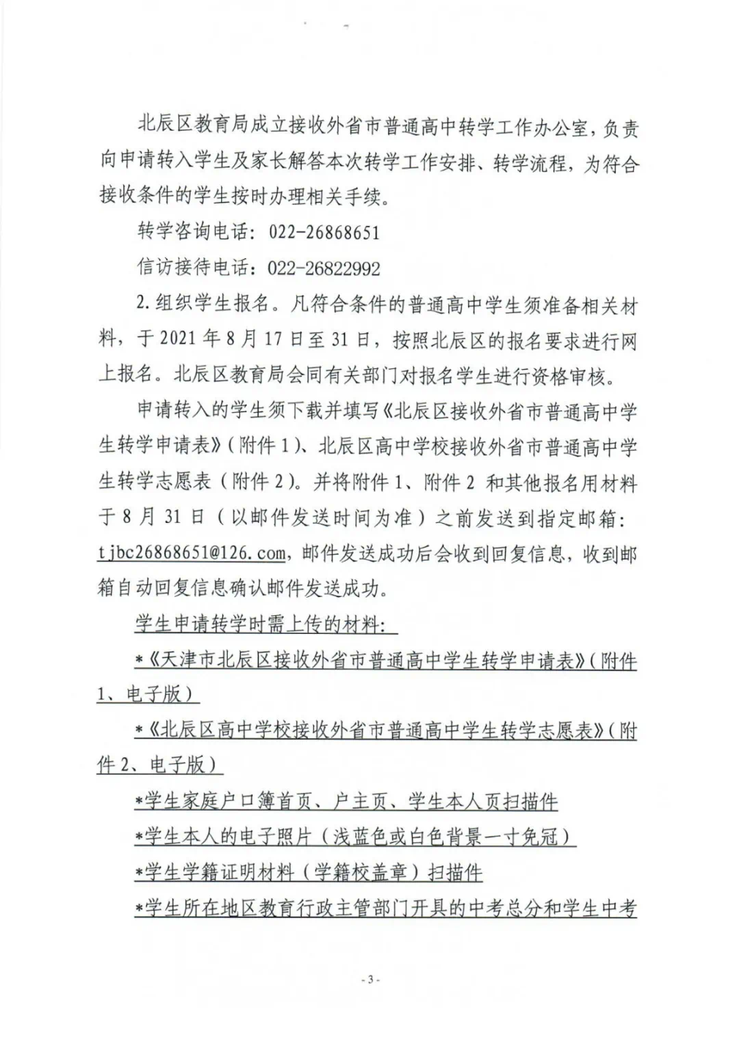 此外天津市教委公布《市教委关于做好2019级、2020级和2021级具有天津市户籍在外省市普通高中就读学生转学工作的通知》(详情)