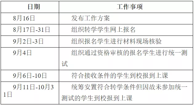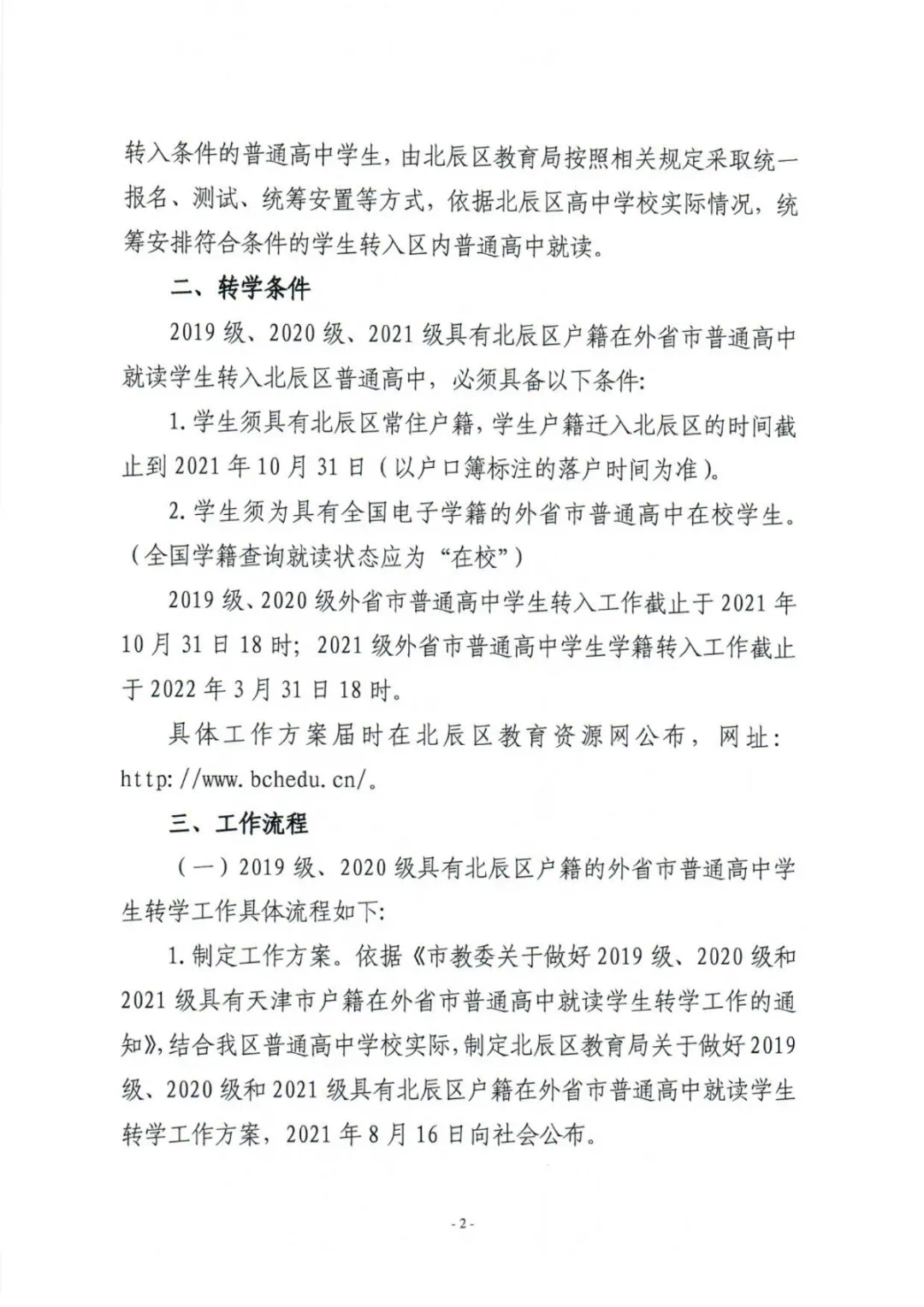8月16日,《和平区教育局关于2019级、2020级和2021级具有和平区户籍在外省市普通高中就读学生转学的工作方案》发布,重要时间点如下: