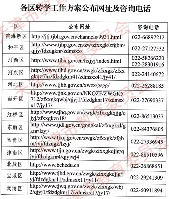 今天天津16个区分别公布转学工作方案各区均于8月17日起开始报名有需求的家长和学生可进行查看或拨打电话进行咨询