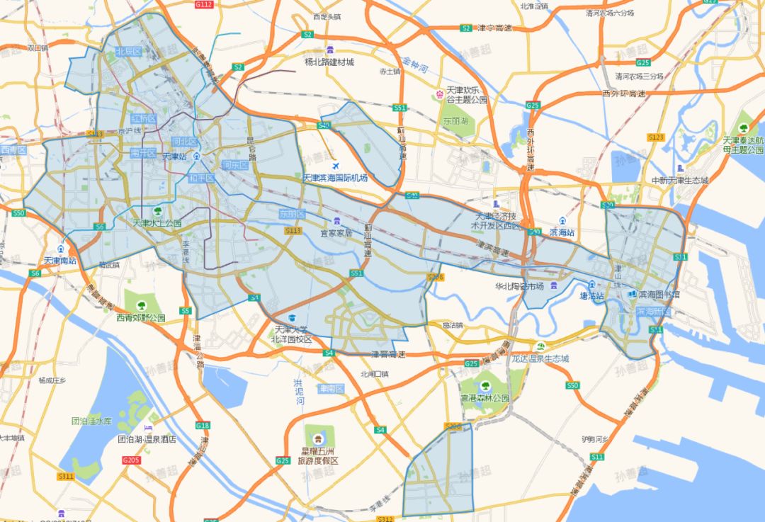 南侧以津港高速-津晋高速为界,覆盖津南核心区域