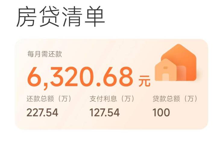 6.5%和4.25%的房贷利率,还款的钱数可就差多了。贷款100万元,等额本息30年还款,每月需要偿还6320.68元。还款总额高达227.54万元,支付利息127.54万元。