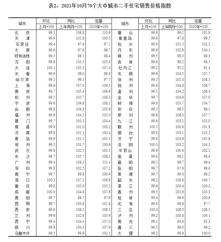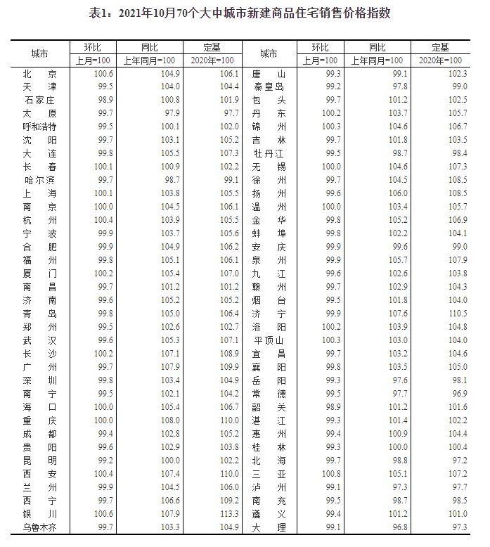 据国家统计局网站消息,国家统计局今日公布2021年10月份70个大中城市商品住宅销售价格变动情况。数据显示,10月70大中城市中有13城新建商品住宅价格环比上涨,9月为27城;环比看,三亚涨幅0.8%领跑。
