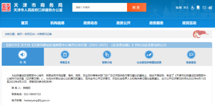 近日,天津市商务局制定了《天津市建设区域商贸中心城市行动方案(2022-2025)》(以下简称《方案》),现面向社会公开征求意见。