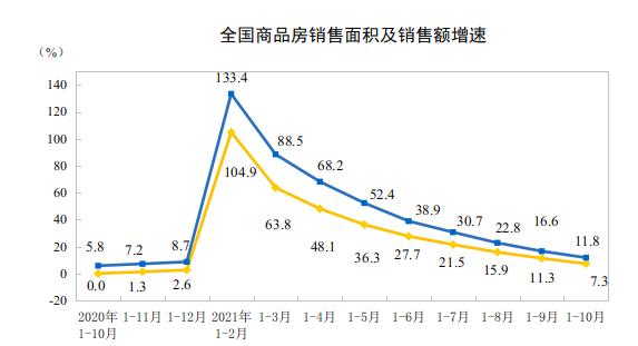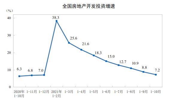 国家统计局数据显示,1-10月,全国房地产开发投资12.49万亿元,同比增长7.2%;比2019年1-10月增长14.0%,两年平均增长6.8%。