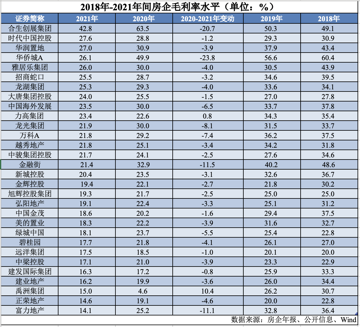 另据国金证券统计,3月以来房企发布的2021年业绩公告显示,平均毛利率为18.74%,平均净利润率为8.21%;而制造业在2021年的毛利率水平20.53%,净利率为7.96%。