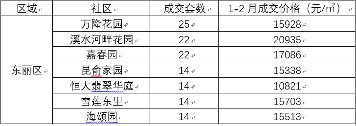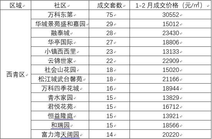 以下就环城四区1-2月份成交热点社区成交量价进行盘点: