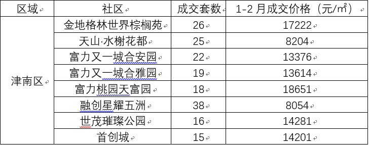 2021年1-2月天津成交最火热的100个二手房社区—环城篇