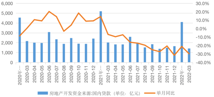 1-3月,到位资金中国内贷款为5525亿元,同比下降23.5%,降幅环比扩大2.4个百分点。