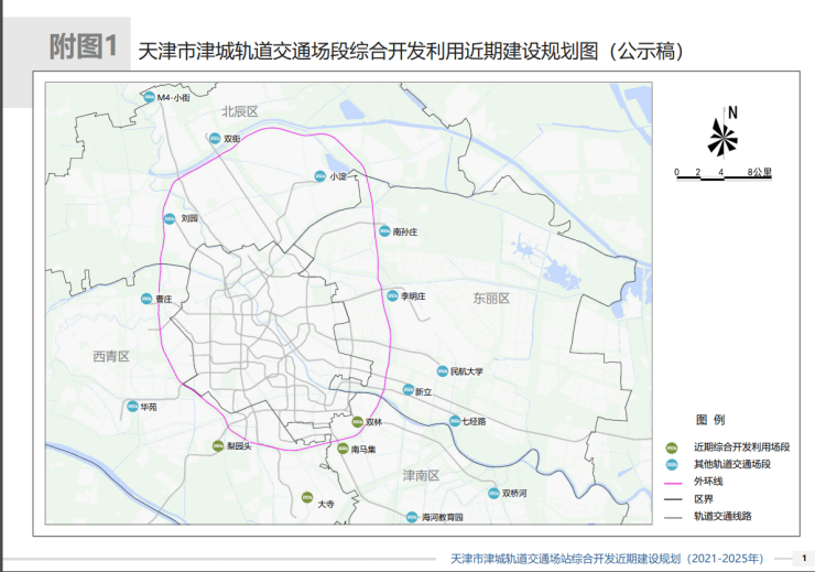为强化轨道交通对“一市双城多节点”城市空间格局的支撑,促进轨道交通与城市发展高度复合化、集约化、高效化,进一步提升城市活力、缝合城市功能、美化城市环境,市规划和自然资源局会同市轨道集团等单位,结合正在编制的国土空间规划,在对已建、在建轨道交通场站周边用地资源进行全面梳理的基础上,开展了《天津市津城轨道交通场站综合开发近期建设规划(2021-2025 年)》的编制工作。