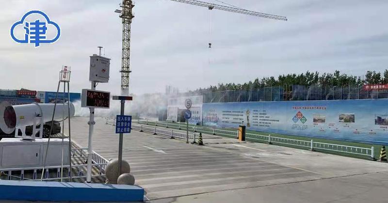 建筑施工扬尘是大气环境污染的重要来源之一,生态城通过扬尘在线监测系统加强施工现场扬尘治理。在50#地块中学项目入口处,设置有了一个带有LED显示屏的小型装置,屏幕上的红色字体滚动显示着工地的现场固体颗粒物指标,可实时对工地现场扬尘进行监测。当现场固体颗粒物指标超标时,自动喷淋降尘,有效降低现场固体颗粒物。