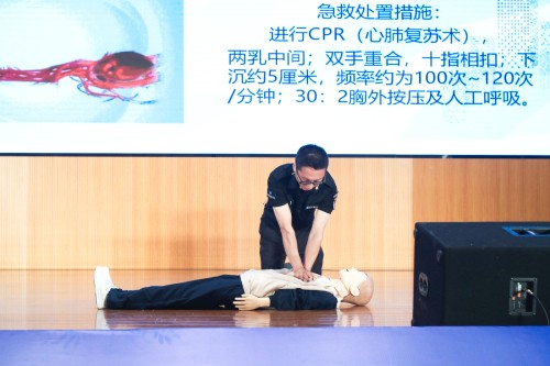 在“安全讲师赛”决赛环节,6名从各大区、投资公司区域赛中脱颖而出的优秀讲师围绕易燃易爆品、高处坠落、脚手架、临时用电、机械设备、公共安全运营等六个方面展开安全主题演讲,展示着属于安监者的独特魅力。活动现场还特别安排了建筑施工意外伤害与伤员救治演练,将院前急救真实全面的展示给在场观众,科普实用安全知识,提升应急救助能力。