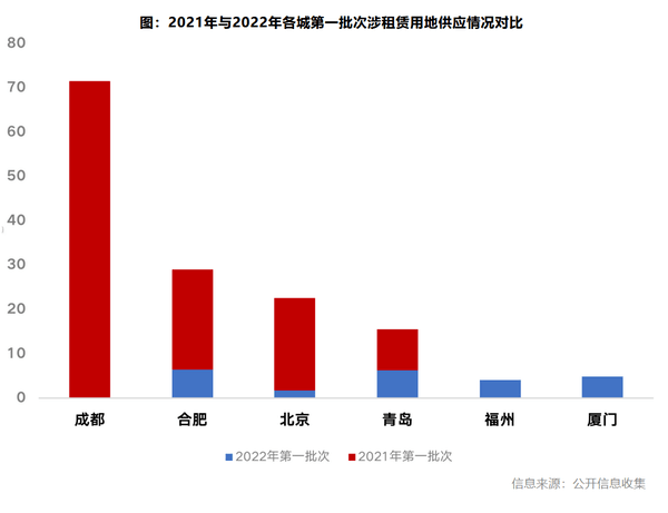 2022年排名前列批次集中供地,涉租赁用地成交量大幅下降