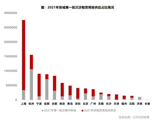 2021年排名前列批次集中供地各城加大了涉租赁用地的供应,排名前列批次中占全年供应达到了较高的比例,仅部分城市如济南和长春在排名前列批次集中供地中就供应了全年的涉租赁用地。