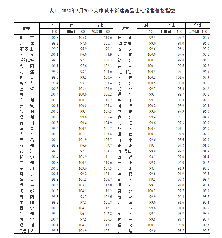 7月15日,国家统计局公布的数据显示,6月70个大中城市商品住宅销售价格环比总体趋稳,环比上涨城市个数增加,同比继续走低,同比上涨城市个数减少。新建商品住宅和二手住宅销售价格环比上涨城市分别有31个和21个,比上月均增加6个。