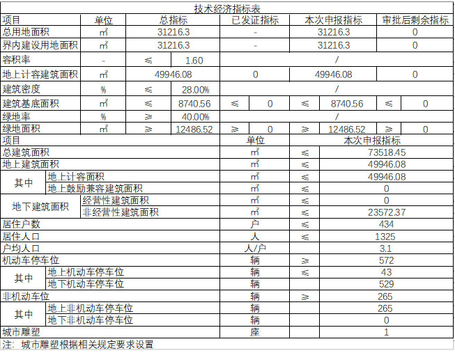 该项目总用地面积31216.3平米,容积率≤1.6,地上计容建筑面积49946.08平米,居住户数434户,户均面积115平米。
