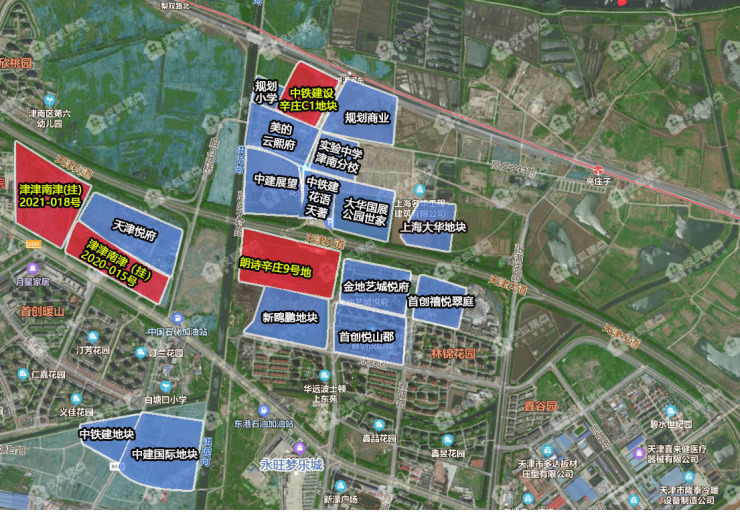经核实,该宗地块为今年5月天津首轮“两集中”供地中,中铁建以总价6.35亿元、楼面价12713元/平米、溢价19%竞得的位于津南区国展西板块的津南(挂)2020-07号。