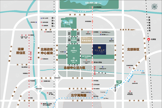 北宸正荣府位于北辰区淮东路与沁河中道交口,属于淮河道板块。在“外环补圆”工程带来的积极影响下,该区域目前已成为北辰区的核心地段,拥有“两横三纵”发达的交通网。