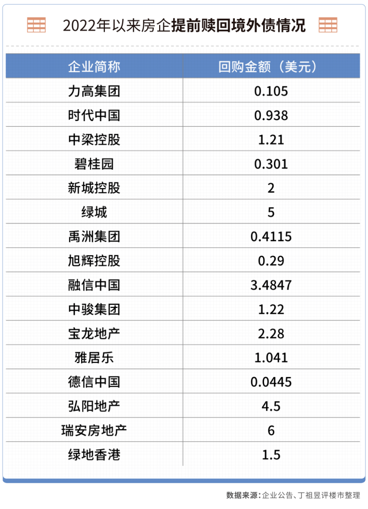 自2021年下半年,房企便积极回购债券。仅去年下半年就有不少于24家房企陆续实行境外债提前回购举动,回购次数超过153次,提前回购境外债券及票据涉及资金合计24.86亿美元。