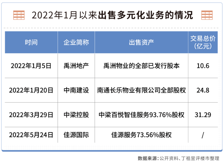 除了投资、开发项目等资产,企业还进行多元化业务的出售。