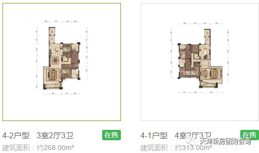 4号楼25层到顶 三梯两户;金角268平米(三室)银角313平米(四室)