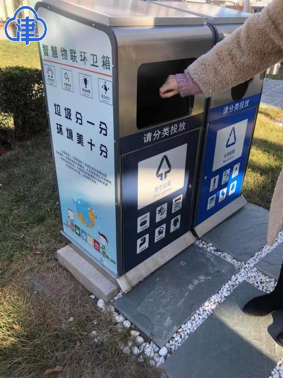 走出“0+小屋”,记者看到不只小屋屋顶布满了光伏板,在屋外小路上也铺设了光伏板,这些光伏板都将成为小屋电源。小屋旁边有一个智能垃圾桶,当记者往垃圾桶投放垃圾时,手刚刚靠近垃圾箱,投放门自动打开,“保护环境人人有责,欢迎使用智能垃圾箱,请分类投放。”一段提示音传来。“这个垃圾箱所有的电都是它顶部的光伏板产生的,没有任何外接电源。当人手靠近时,自动开门,避免了人与垃圾箱的直接接触。”贺瑞介绍。