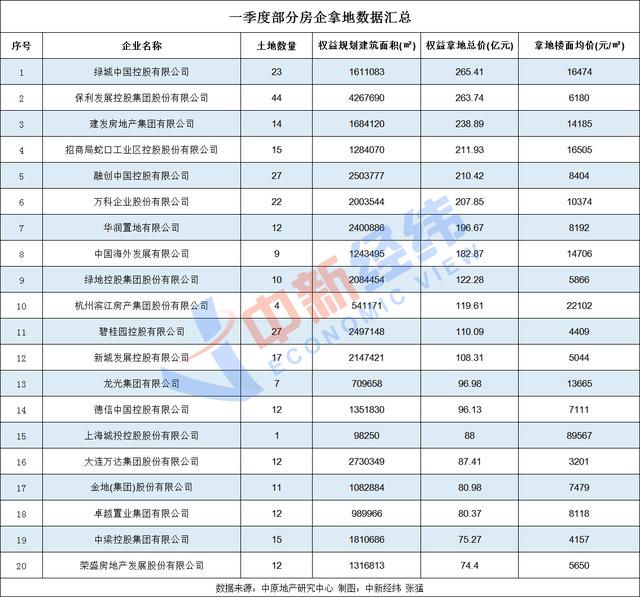 此外,数据显示,一季度,共有上海、杭州、广州、北京、成都、宁波、武汉、南京、苏州、郑州、东莞、温州、天津、西安、长沙、绍兴、福州、无锡、南通、佛山、重庆等21城卖地收入超百亿。中原地产首席分析师张大伟对中新经纬记者表示,整体看,一年卖3次地消息逐渐开始影响土地市场,3月各地土地市场供应减少,预计4月份可能井喷,但土地价格依然高位。易居研究院智库中心研究总监严跃进预计,后续地市行情活跃和房企的心态等有关。一方面,一二线城市集中供地政策相继落地,客观上拿地机会增大。另一方面,从拿地成本和“三道红线”等角度看,部分房企可能会更强调到三四线城市拿地,毕竟土地总价相对低。但无论房企心态如何,预计今年地方政府供地节奏会加快,客观上对土地交易行情的活跃有积极作用。贝壳研究院认为,土地侧“两集中”在22城加快落地速度,对于市场的影响更为深远。下一步,热点城市土地市场整体大幅上涨的推动力将趋弱。拿地超百亿房企达12家房企拿地方面,中原地产研究中心统计数据显示,一季度,有12家房企拿地超百亿。