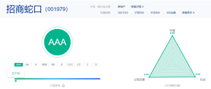 (招商蛇口ESG评级,图源:中证指数公司官网,央广网发)