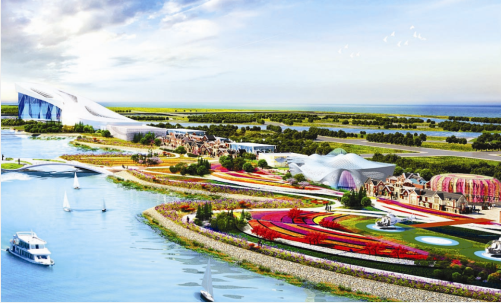 万达文化旅游度假区项目选址于生态城临海新城区域,包括文化旅游产业和生态社区两部分,其中,文化旅游产业部分将建设 “一园、一场、一街、两酒店”,涵盖文化旅游、商业购物、休闲娱乐、体育康养等业态。作为国家全域旅游示范区,生态城拥有绵延36公里长的生活海岸线,现有旅游项目均依河、湖、湾、海而建,区域海洋文化、休闲娱乐等沿海优质旅游资源丰富,形成了“蓝绿交织、河海相连、动静结合、全域游乐”的滨海旅游城市风光。