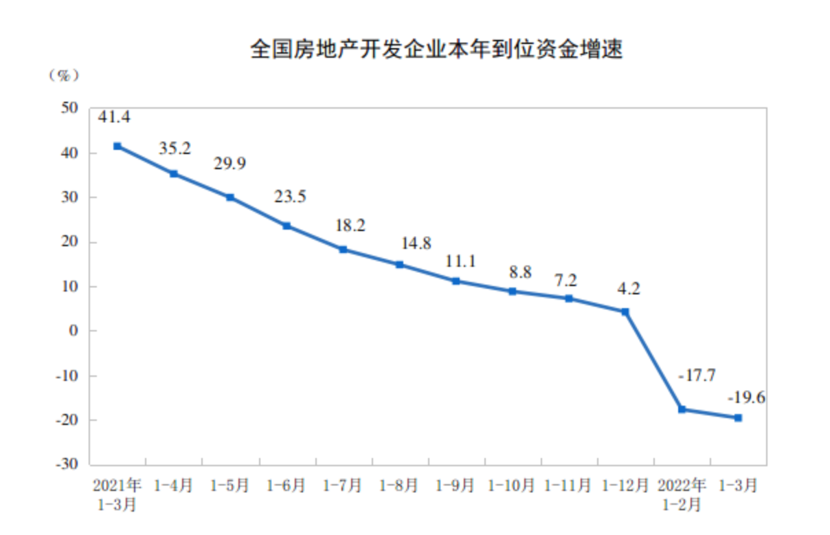 房企到位资金依然不乐观,同比降19.6%