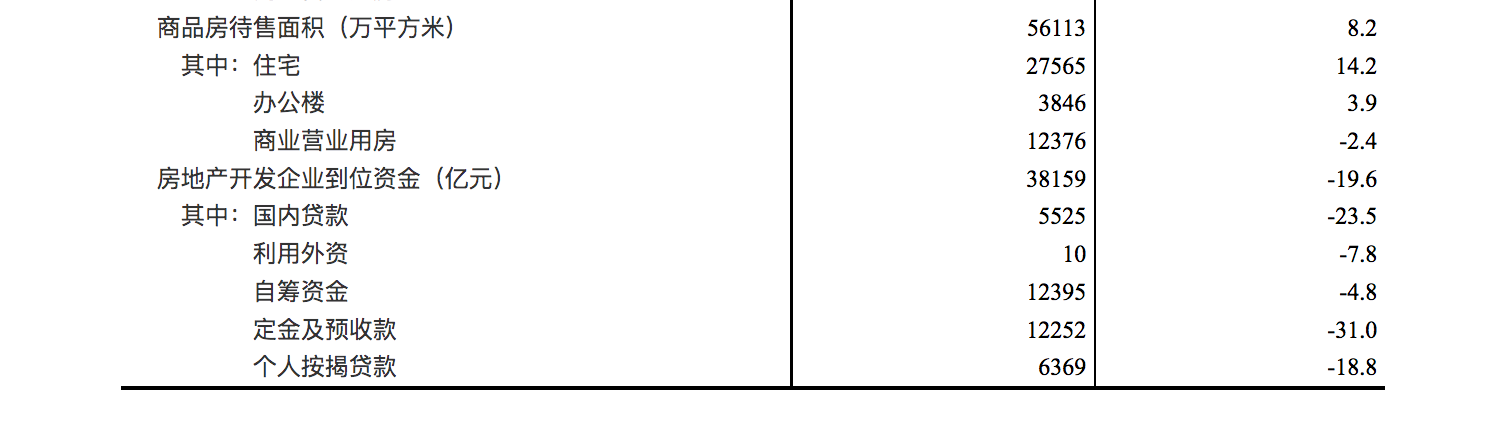 对于下阶段房地产走势的情况,付凌晖表示,尽管当前房地产销售在下降,但是也要看到,随着多地适度放开限购限售,降低公积金使用门槛,加快购房贷款审批等,部分城市的住房需求有所释放,销售面积降幅有所收窄。
