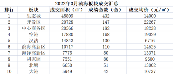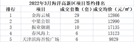 从3月成交排名来看,位列榜首的是金海云城,共成交29套,成交均价12866元/㎡。该项目产品全部为小高层,主推78-99㎡小户型,预计2022年5月交房。排名第二的是中梁公馆,3月共成交28套,成交均价12990元/㎡。该项目目前主推78㎡、87㎡、97㎡、106㎡户型,预计2024年6月30日交房。值得一提的是,该项目是板块内所有项目中距离核心配套最近的,与吾悦广场和九年一贯制学校仅一路之隔。排名第三的是振业御湖,3月份共成交10套,成交均价17135元/㎡。项目共规划有25栋住宅,产品为洋房和小高层,主推89-142㎡户型,定位更偏向改善,项目为精装,自建有4400㎡的幼儿园。春风海上,3月共成交6套,成交均价13123元/㎡。项目由中交地产和天津食品集团联合开发,采用绿城物业。项目共规划有24栋住宅,产品为高层和洋房,主推户型为66-118㎡户型,预计2022年11月15日交房;较低门槛只需要80多万,是几个项目中总价较低的。同时,项目内还规划有幼儿园和商业,满足业主日常生活所需。此外,该盘距离滨海西站步行约15分钟左右,京津通勤者可以重点关注。天津滨海吾悦广场,目前已经是尾盘了,3月成交6套,成交均价9829元/㎡,是海洋高新区目前价格较便宜的项目。项目产品有高层、小高层和洋房,主推户型85-119㎡之间,预计2021年11月交房。值得一提都是,该项目自带10万㎡商业,为板块内带来大型商业配套。同时,该项目也是所有项目中交房最早的。奉上购买建议。如果预算有限,或者着急入住的,重点考虑吾悦广场。如果喜欢出门就可以逛商场,或者方便接送孩子上学,重点考虑中梁公馆。如果更倾向于买洋房,但是预算有限的,可以看下春风海上。如果是改善置业,预算充足,看重品牌,可以选择国企开发的振业御湖。如果跟随多数人的选择,金海云城的销量无疑是最多的。