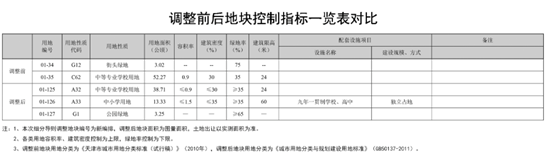 调整后,从原有中等专业学校用地内新规划出一处中小学用地,用地面积为13.33公顷,容积率≤1.5,将建设一所九年一贯制学校及高中。