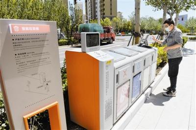 近日,中新天津生态城排名前列智慧社区——季景智慧活力社区正式亮相。AI垃圾分类科普机器人、海绵城市展示互动装置、海绵断层展示屏等全新的智慧设备设施,打造出充满活力的智美街区。图为AI垃圾分类科普机器人。