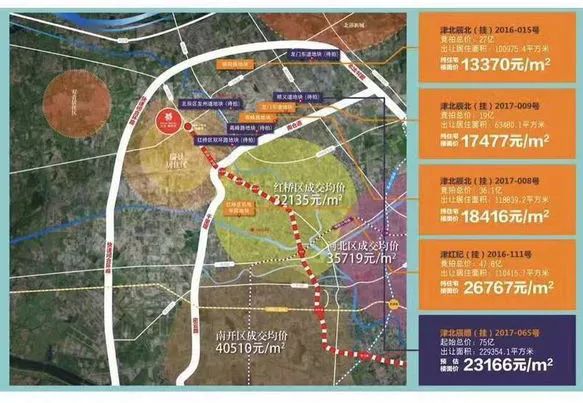 近几年,天津土地市场活跃,土地价格水涨船高,瑞景板块相连的区域也成交了多宗优质地块,楼面价较高达到了26767元/平米。