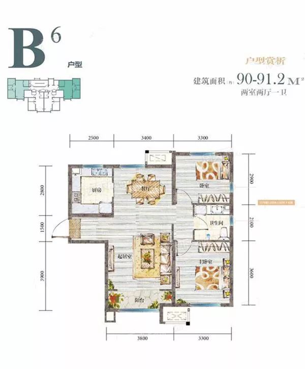 2、客厅面宽3.8米,宽敞舒适;卫生间为明卫,利于通风。
