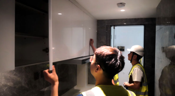 天津公司总经理亲自带队深入一线监督品质,确保交付前的准备工作。在质量查验过程中,精装团队对马桶水箱、地漏、灯槽、橱柜底部等容易滋生细菌的部位全面排查,无死角清理;绿建团队耗时三个月通宵达旦顺利完成各项运行测试,确保冷调、暖调等无问题;客关物业团队统筹完善开放流程,力求给业主带来更好的体验。