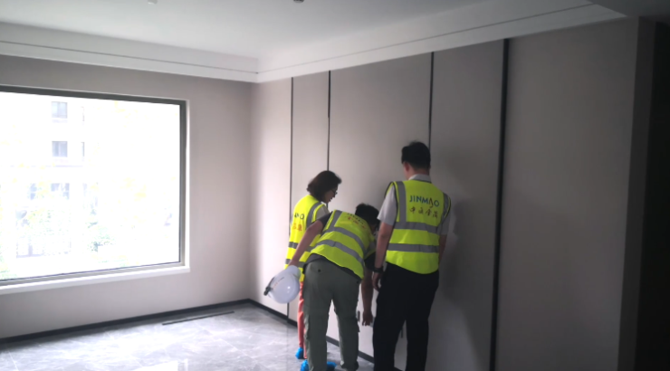 在交付节点前三个月左右,第三方查验团队入驻,经历三轮查验后,才进入金茂全员参与的交付程序;各部门领导亲自带队,包楼包户查验,保证进入每家每户,确保交付前的准备工作到位,并在交付进度、质量、满意度、房屋问题处理等维度全方位跟进;交付前金茂天津更是组织了全员培训与演练,力保兑现优质的交付现场。