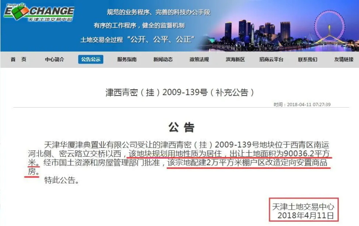值得一体的是,而在2018年4月11日,地块以补充公告的形式,宣布该宗地配建2万平米棚户区改造定向安置商品房。