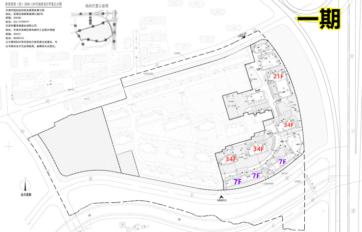 项目一期位于项目东侧,包括7栋住宅楼,其中3栋为洋房,7层到顶,4栋为高层,1栋21层到顶,3栋34层到顶。