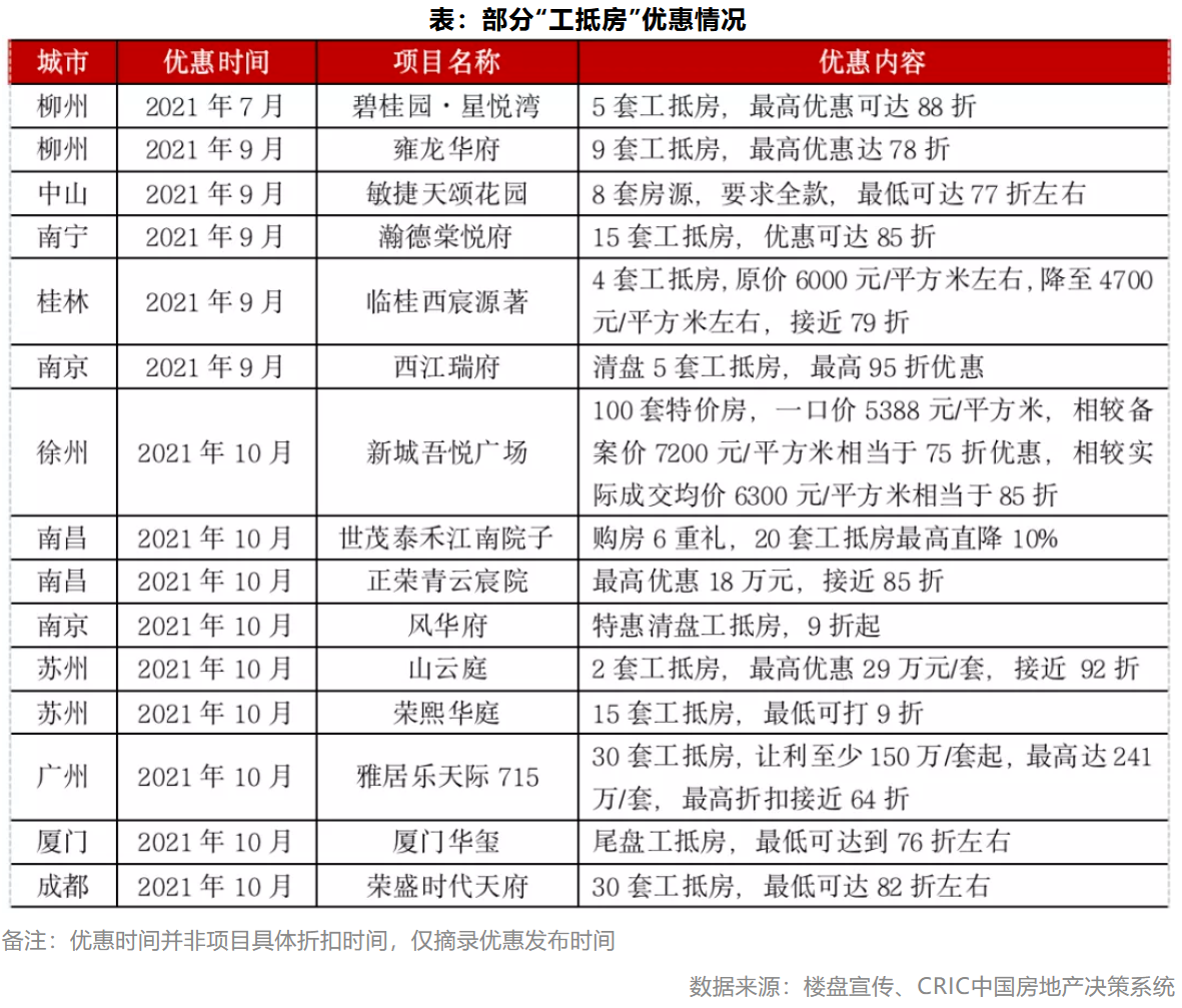 另外一部分就是房企通过“工抵房”的名义来降价促销的房源。