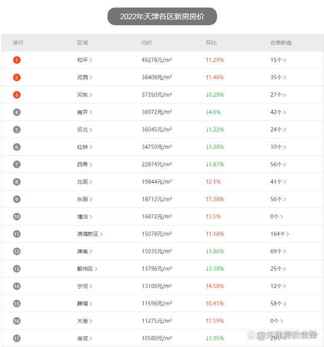 2022年2月份天津较新房价及房价走势一览图