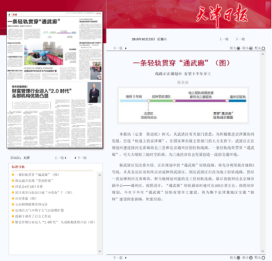 贯穿“通武廊”轻轨线示意图(图片来源于:天津日报)