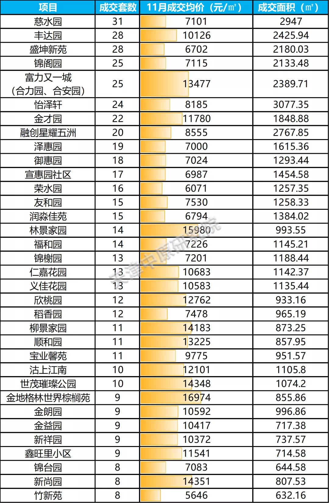 以下就11月份中心城区和环城四区成交热点社区成交量价进行盘点:
