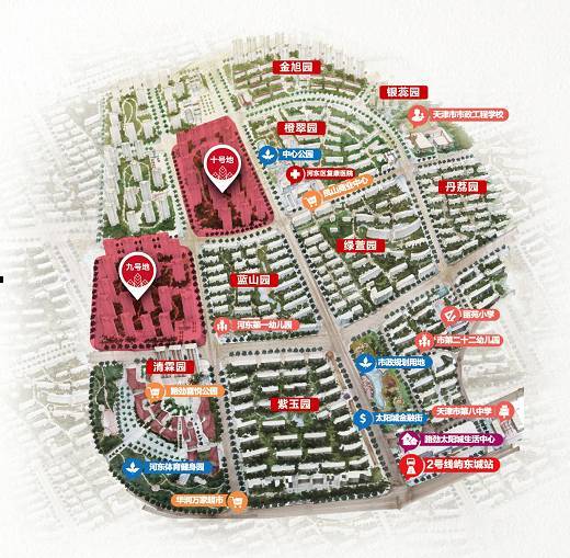 太阳城板块因路劲太阳城项目得名,因为该项目体量巨大,占地超过1500亩,总建面超过200万平米,开发建设时间超过20年,目前有超过18000多个家庭,将近5万人生活,已经成为河东新房市场的一张名片。